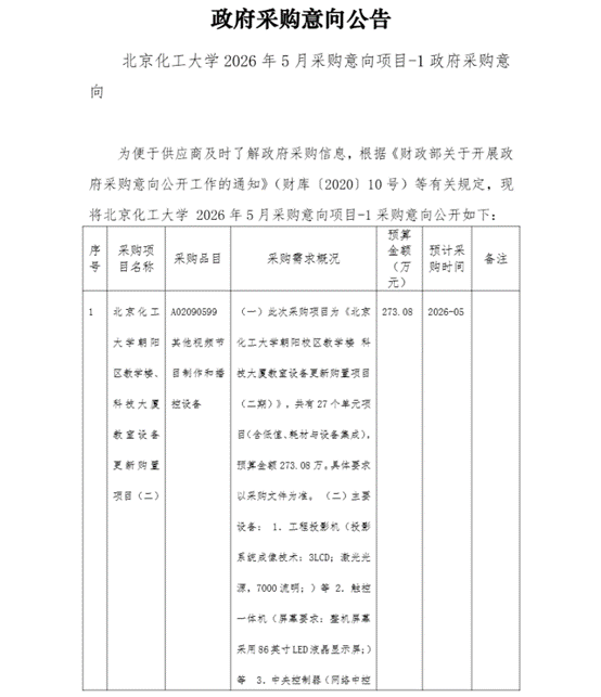 2026年5月政府采购意向项目-1