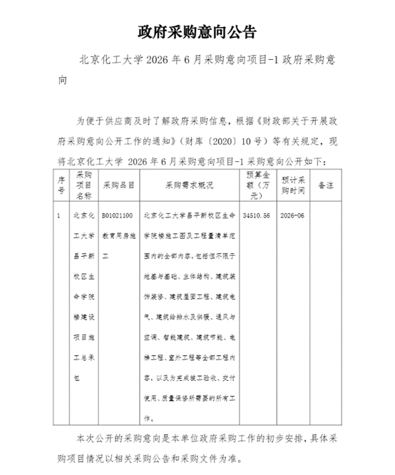 2026年6月政府采购意向项目-1