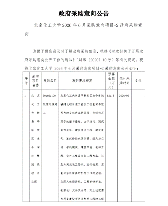2026年6月政府采购意向项目-2